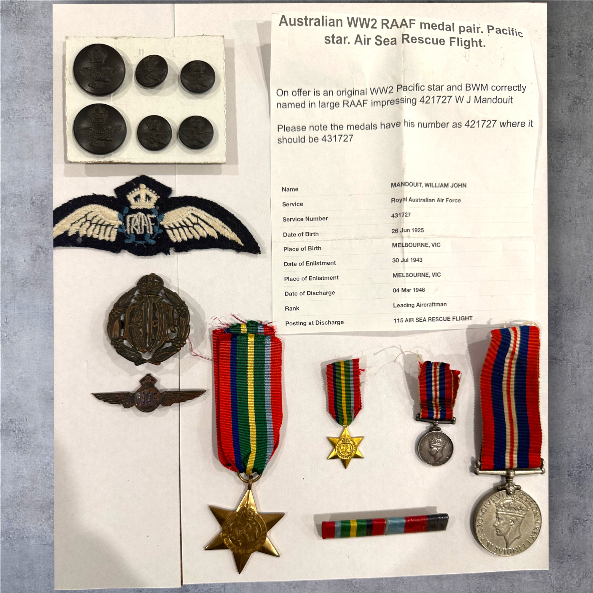 Named: W. J Mandouit. (See /look at paperwork as per photos).