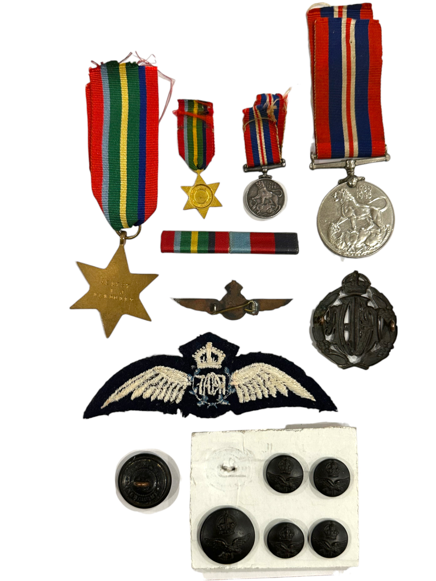 Australian WW2 RAAF Medal pair with minis, bar and badges lot. Medals
